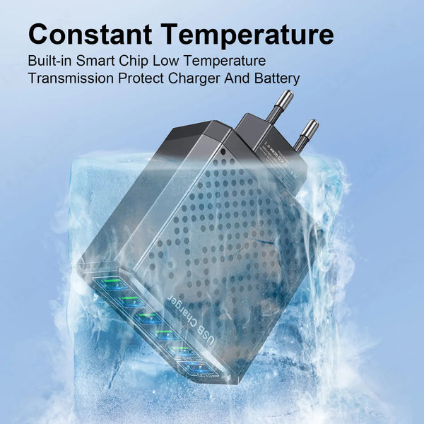 This smart hub features six high-speed USB ports, allowing you to charge phones, tablets, smartwatches, and other devices simultaneously without clutter. Built with intelligent power distribution, it automatically detects each device’s power requirements for optimal speed and safety.